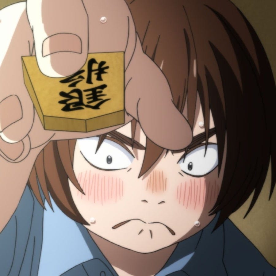 Still enjoying this as I expected, though there wasn't really a moment that totally kicked my ass until episode 30 (season 2 episode 8) which suddenly had a pretty big moment. There are parts of the daily struggles that don't really work for me, like 桐山's stepsister's whole deal, or the bullying arc for ひなた, but generally I find the drama that surrounds the Shogi is pretty well done (even stuff that really has nothing to do with Shogi).